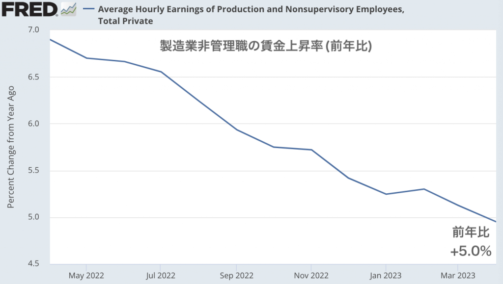では、今後のアメリカのインフレ率の行方を考えるために、2023年の賃金上昇率はどうなっているのかを見ていきます。