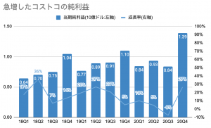 実はコストコは一部の国で旅行事業もやっているのですが、こちらは軟調だったものの規模が小さいので影響は限定的でした。一方で、オンライン経由での家電や生活用品の収益は大きく上昇している傾向が見られたようです。