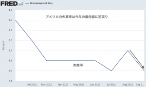 普通なら雇用が強いのは良いことですが、まだまだインフレがアメリカに居座っている今は話が別です。雇用が弱まれば(景気が悪くなれば)2023年にも利下げもあるのではないかと市場は考えていましたが、景気はまだまだ強いので、利下げ期待も後退して株価も売られる形になりました。
