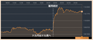 今回の雇用統計では予想よりも景気が良いことがわかったため、雇用統計のあとに国債は売られました(国債の利回りは上昇)。