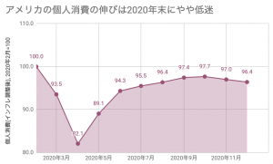 11月から12月にかけて個人消費が低迷したのは、新型コロナウイルスの感染拡大で各州で規制が強化されたからだと思われます。