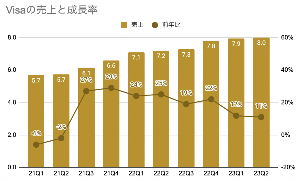 Visaからもう少しだけ詳しいデータが提供されていますので、決算資料で提示されていたグラフも見ていきましょう。